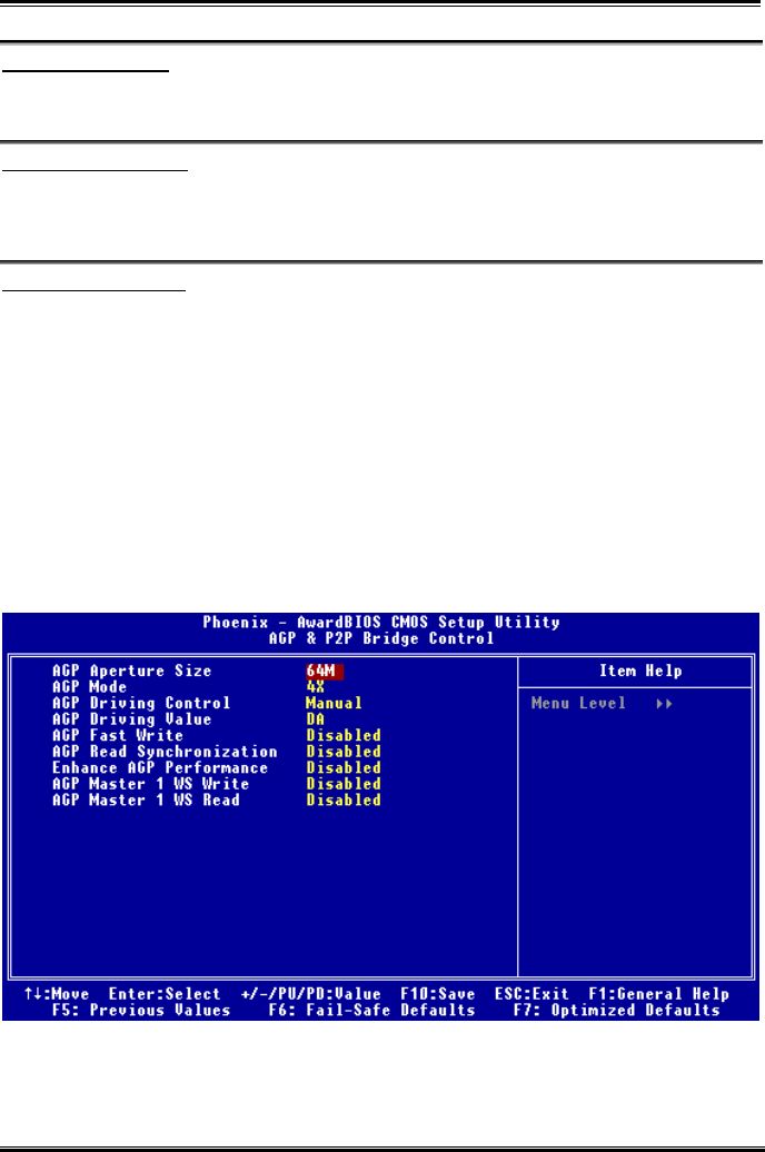 This item can let you sets several items concerning the AGP parameters. If you do not understand what
