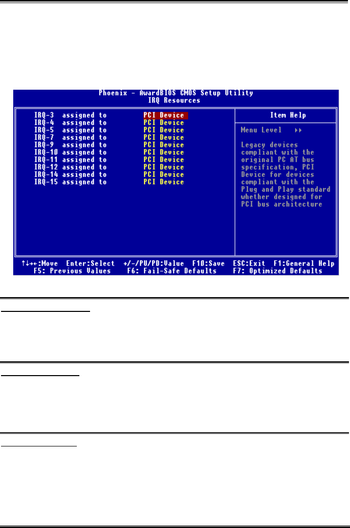Figure 3-8B. IRQ Resources Setup Menu