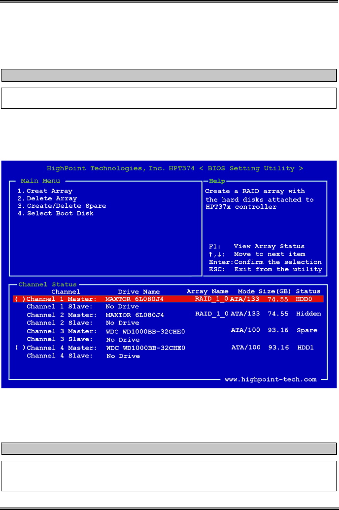 create the RAID system. The detailed of software operation, you can refer the software “Help” menu.
