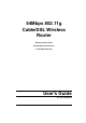 2 Chapter 2 Installation This Chapter covers the physical installation of the Wireless Router. Requirements • Network cables. Use standard 10/100BaseT network (UTP) cables with RJ45 connectors. • TCP/IP protocol must be installed on all PCs. • For Internet Access, an Internet Access account with an ISP, and either of a DSL or Cable modem (for WAN port usage) • To use the Wireless Access Point, all Wireless devices must be compliant with the IEEE802.11g specifications.
