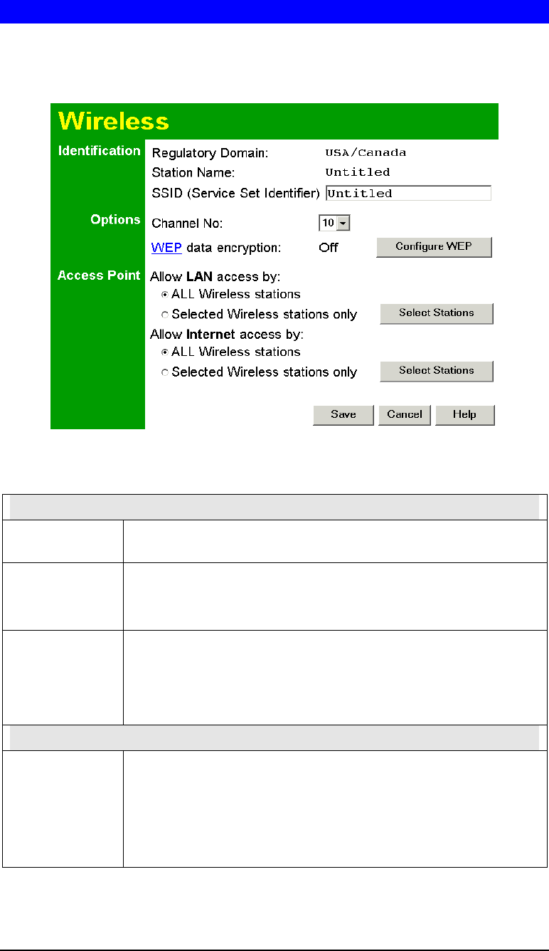 The Wireless Access Point settings must match the other Wireless stations. To change the