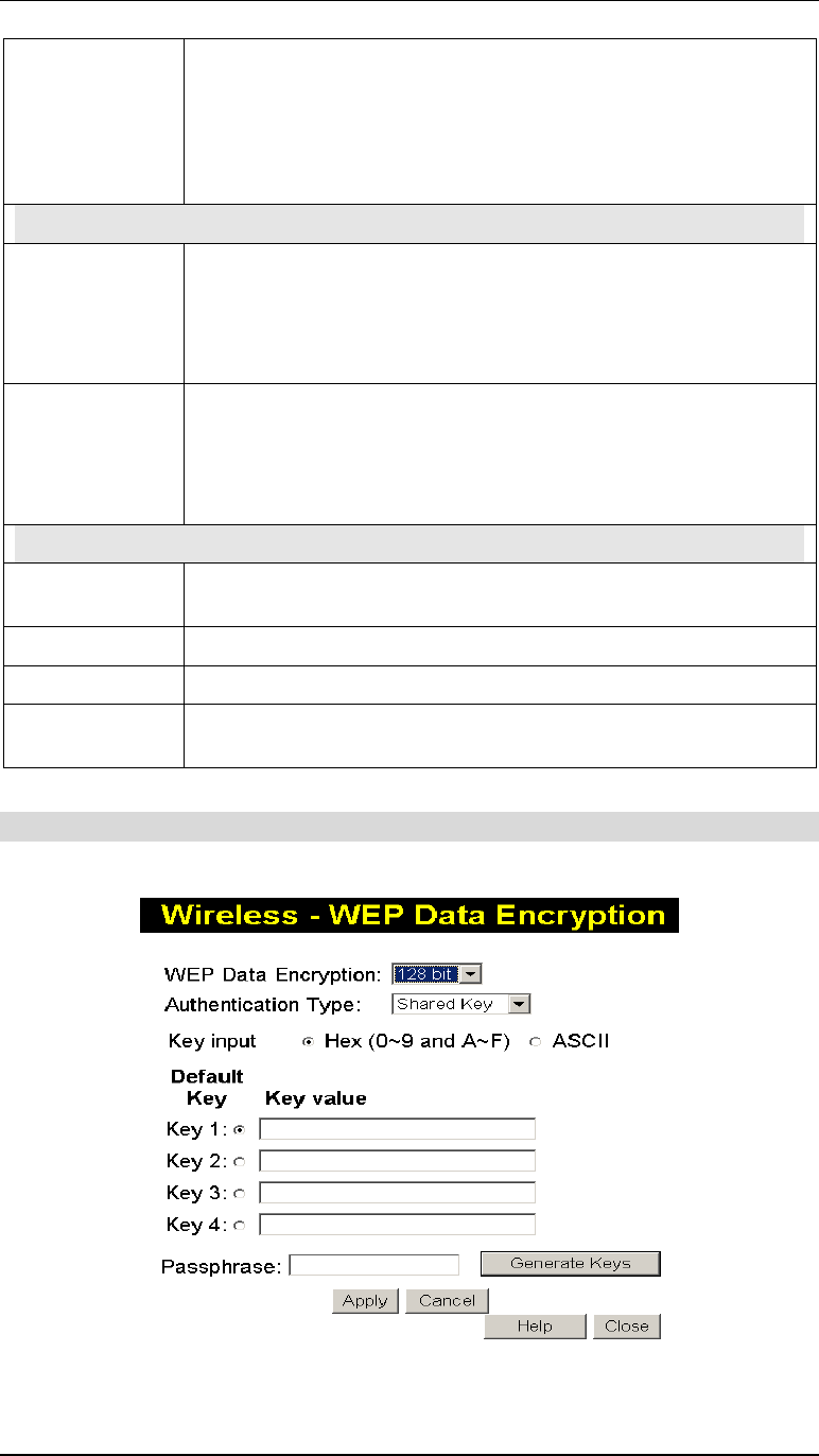This screen is accessed by clicking the "Configure WEP" button on the Wireless screen.