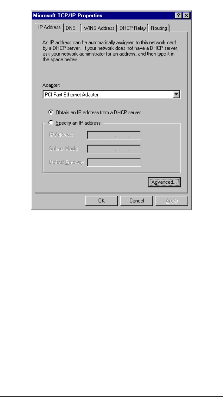 1. The Default Gateway must be set to the IP address of the Wireless Router. To set this:
