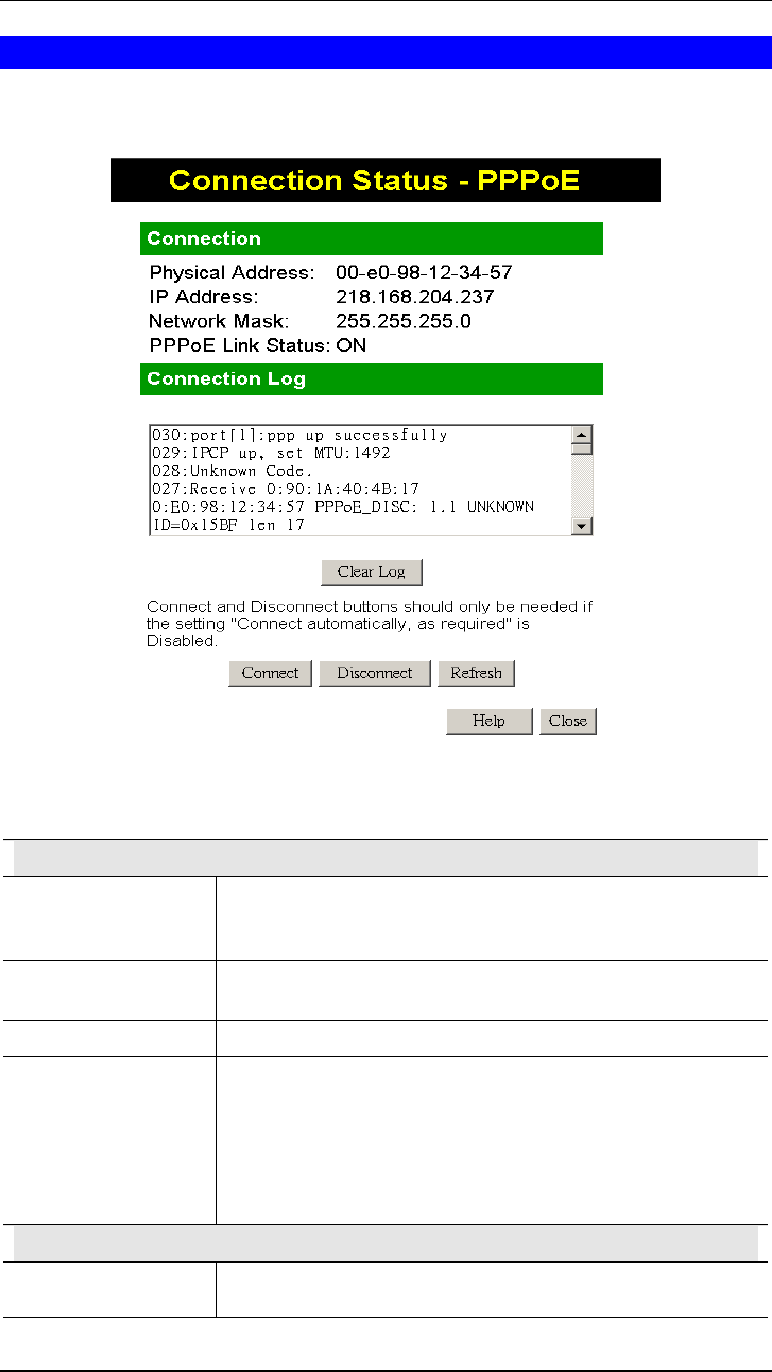 If using PPPoE (PPP over Ethernet), a screen like the following example will be displayed