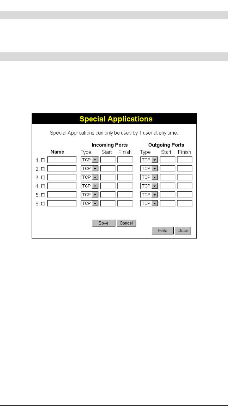 This screen can be reached by clicking the Special Applications button on the Internet screen.