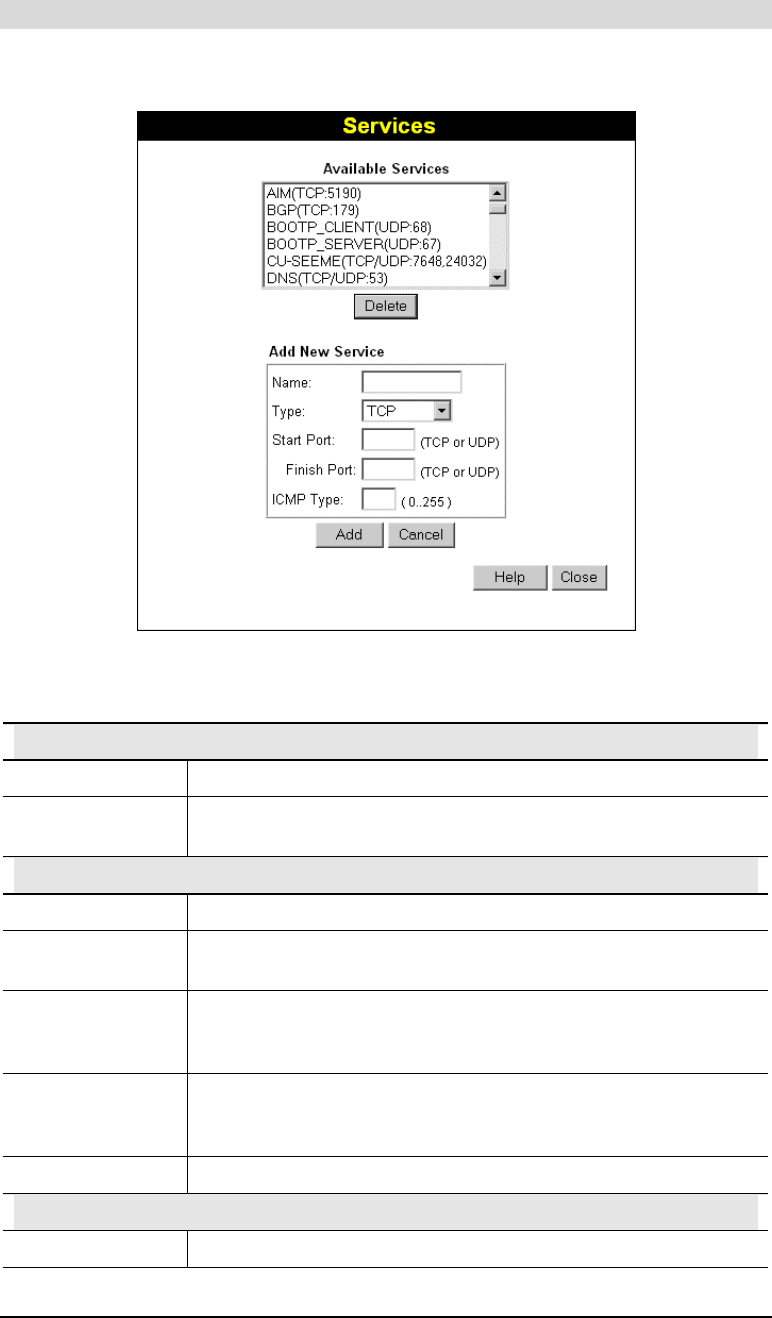 For ICMP Services, enter the type number of the required service.