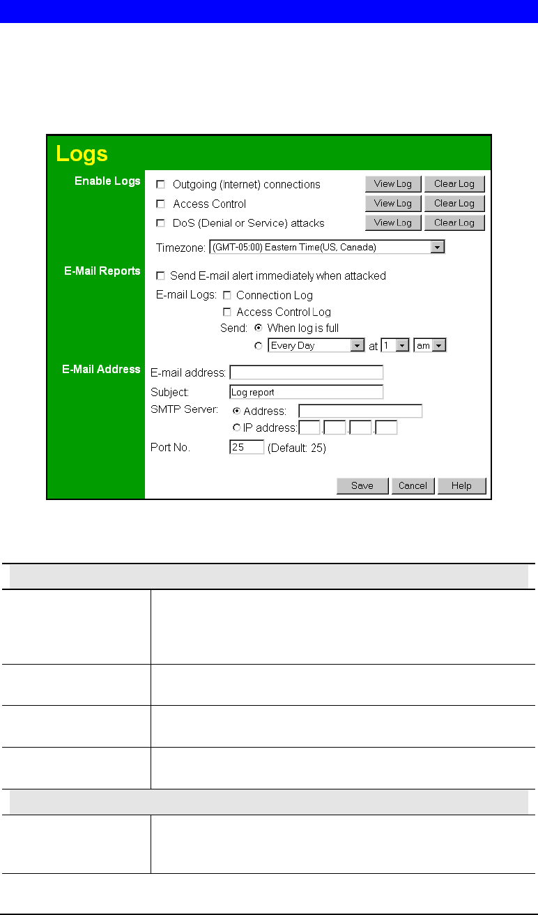 The Logs record various types of activity on the Wireless Router. This data is useful for