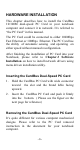 HARDWARE INSTALLATION This chapter describes how to install the CardBus 10/100M dual-speed PC Card in your notebook computer and connect it to network. It’s referred to “the PC Card” in this manual. The PC Card could be connected to either 100Mbps Fast Ethernet or 10Mbps Ethernet. The PC Card has the ability of automatic sensing and operating on either speed without manual recofiguration. After finishing the installation of PC Card into your Notebook, please refer to Chapter.