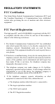 REGULATORY STATEMENTS FCC Certification The United States Federal Communication Commission (FCC) and the Canadian Department of Communications have established certain rules governing the use of modems and other electronic equipment. FCC Part 68 Registration The high speed PC card FAX/MODEM is registered with the FCC as compliant with the rules of Part 68, and use of this modem is subject to the following restrictions: 1.
