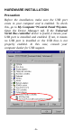 HARDWARE INSTALLATION Precaution Before the installation, make sure the USB port exists in your computer and is enabled. To check this, go to My Computer$Control Panel$System. Open the Device Manager tab. If the Universal Serial Bus controller device is found, it means your USB port is installed and enabled. If not, it means no USB port is installed or the USB bios is not properly enabled. In this case, consult your computer dealer for USB support.
