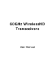 Package Contents The following items should be included: z z z z 60GHz WirelessHD transmitter unit 60GHz WirelessHD receiver unit User manual Remote controller z Two-piece of HDMI cables z Two-piece of power adapters z Warranty leaflet If any of the above items are damaged or missing, please contact your dealer immediately.
