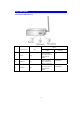 LED Indicators Front Panel: (LED Indicators) Status LED indicator 1 2 3 Power Ethernet Wireless Color Solid Turns solid Blue when the power is applied to this device. Blue Turns solid Blue when an Ethernet cable is connected. Turns solid Blue when the power is applied to this device.