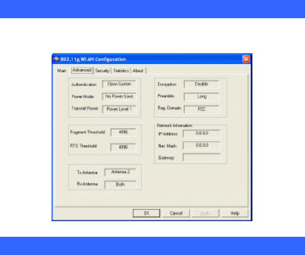 The Advanced tab displays the current status of the Wireless Network