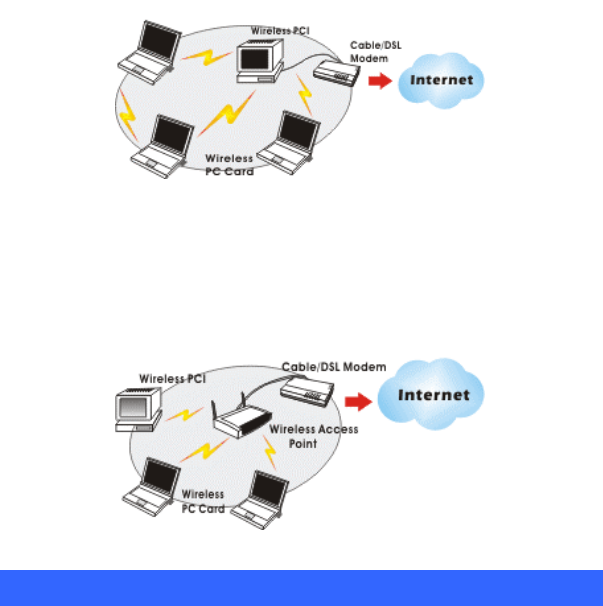 You can also use one computer as an Internet Server to connect to a wired