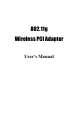 Install the device Note: Make sure the procedures in “Install the Driver & Utility” has been performed. 1. Make sure the computer is turned off. Remove the expansion slot cover from the computer. 2. Carefully slide the Wireless PCI Card into the PCI slot. Push evenly and slowly and ensure it is properly seated, you may have to use the mounting screw to have the card screwed securely in place. 3. After the device has been connected to your computer, turn on your computer.
