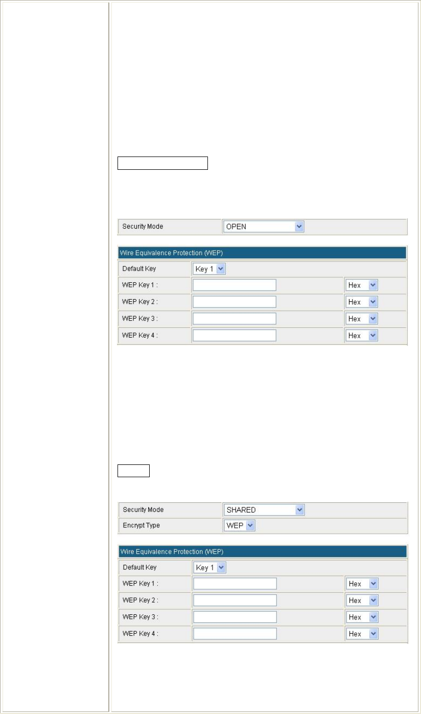 WEP Key 1~4: Enter the key in the selected key field. Only valid