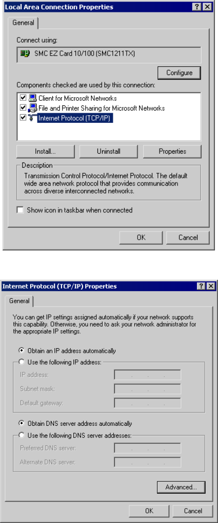 • To use DHCP, select the radio button Obtain an IP Address automatically. This is the default