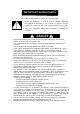 Table des matières Mesures de sécurité importantes ................................................................................. 10 - 11 Emplacement des pièces ....................................................................................................... 12 Information technique ..........................................................................................................13 Instructions d’installation .................................................................................