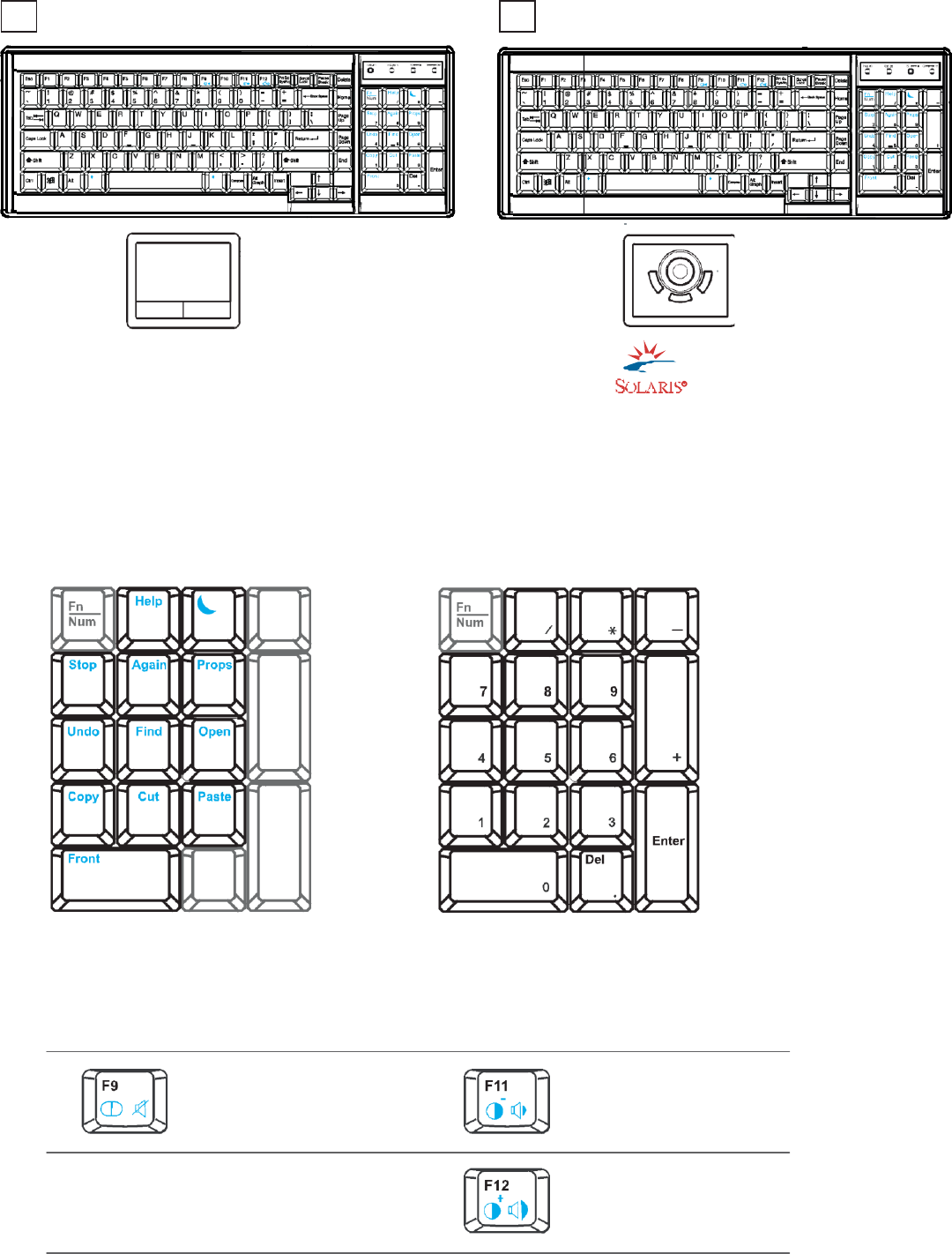 ¦ 104 key notepad keyboard with full numerical pad and SUN function