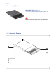 < Part 2 > < 2.1 > Keyboard / Mouse Specifications t Compact keyboard integrated with touchpad d Compact keyboard integrated with trackball Key force Travelling distance Switch life 90 ± 7g 4.
