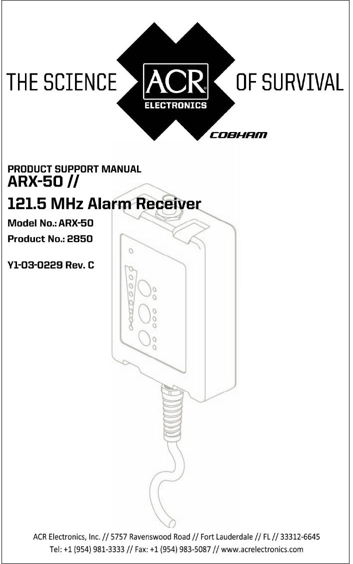 CAUTION: Before proceeding to install, test or use your new ACR Electronics’ product, please read this Product Support Manual in its entirety. If you have questions regarding the contents of the manual, please contact our Technical Service Department at ACR Electronics, Inc., Telephone +1 (954) 981-3333. Please be ready to provide the technician with the page number you wish to discuss.