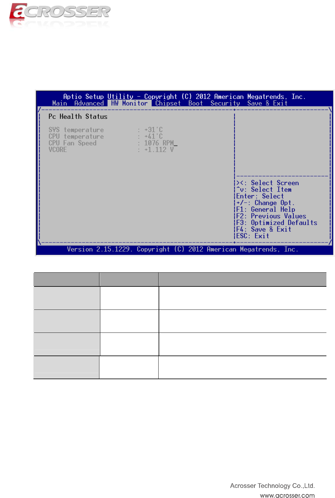 N/A This item displays the CPU Temperature