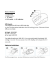 Mouse Buttons 1. Left button 2. Right button 3. Tilt wheel 4. DPI switch + LED indicator DPI Switch The brightness of Green LED indicator on the scrolling wheel indicates the DPI setting in use. There are three different settings: z Bright: 1600 DPI z Dim: 1200 DPI z No light: 800 DPI The default setting is 1600 DPI. You can easily switch between DPI settings. In order to save power, the LED display will only last for 10 seconds.