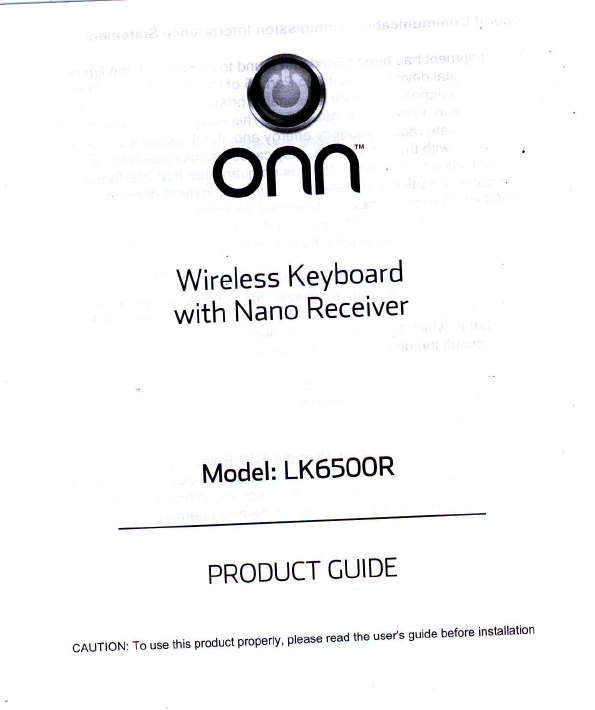 @ onfl KeYboard Wireless with NanoReceiver Model:LKS5OOR CUIDE PRODUCT usefs guide before installation productproperly'please read the CAUTION:To use this