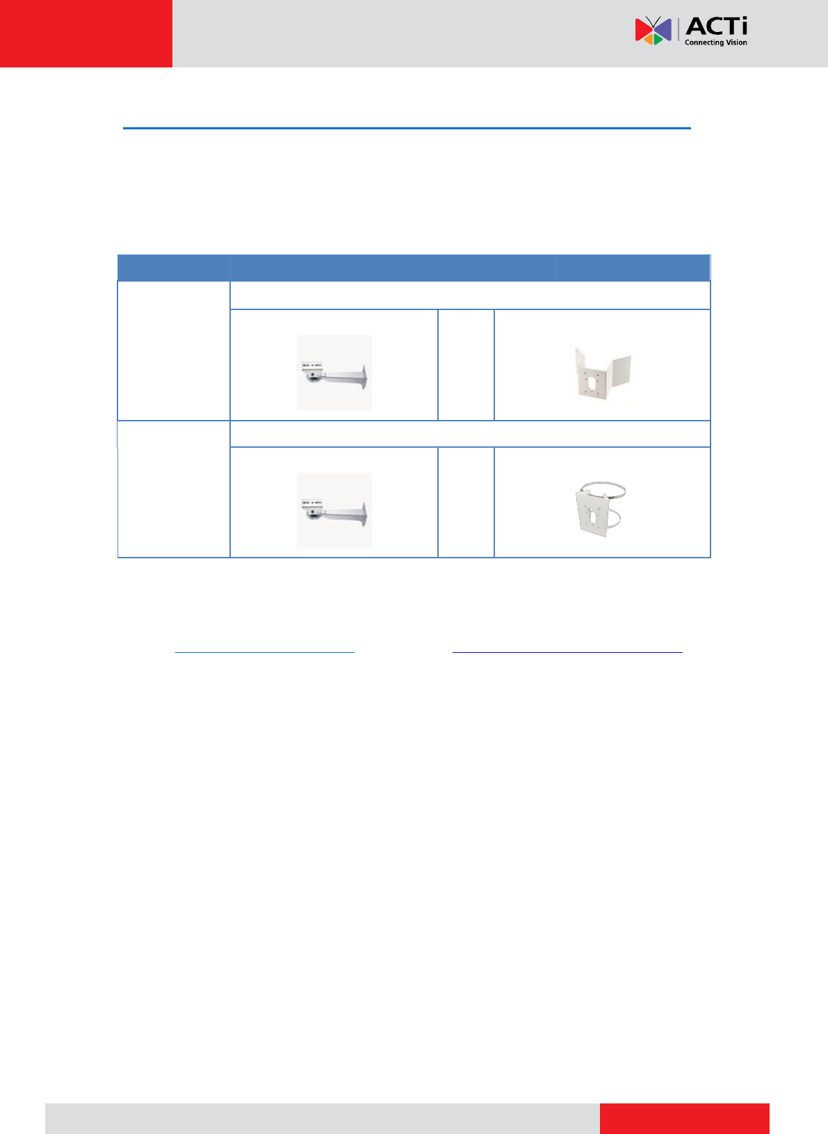 Mounting Accessory Selector in our website (http://www.acti.com/mountingselector).