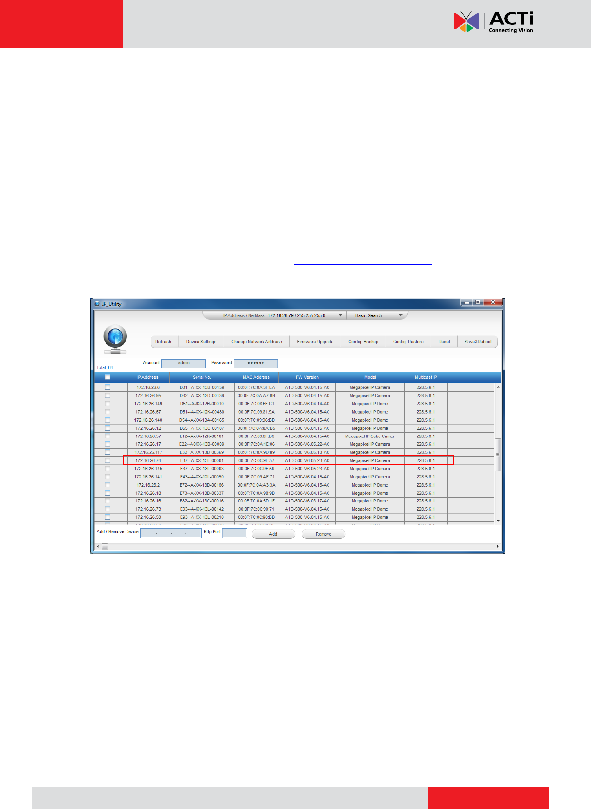 The IP Utility can be downloaded for free from http://www.acti.com/IP_Utility
