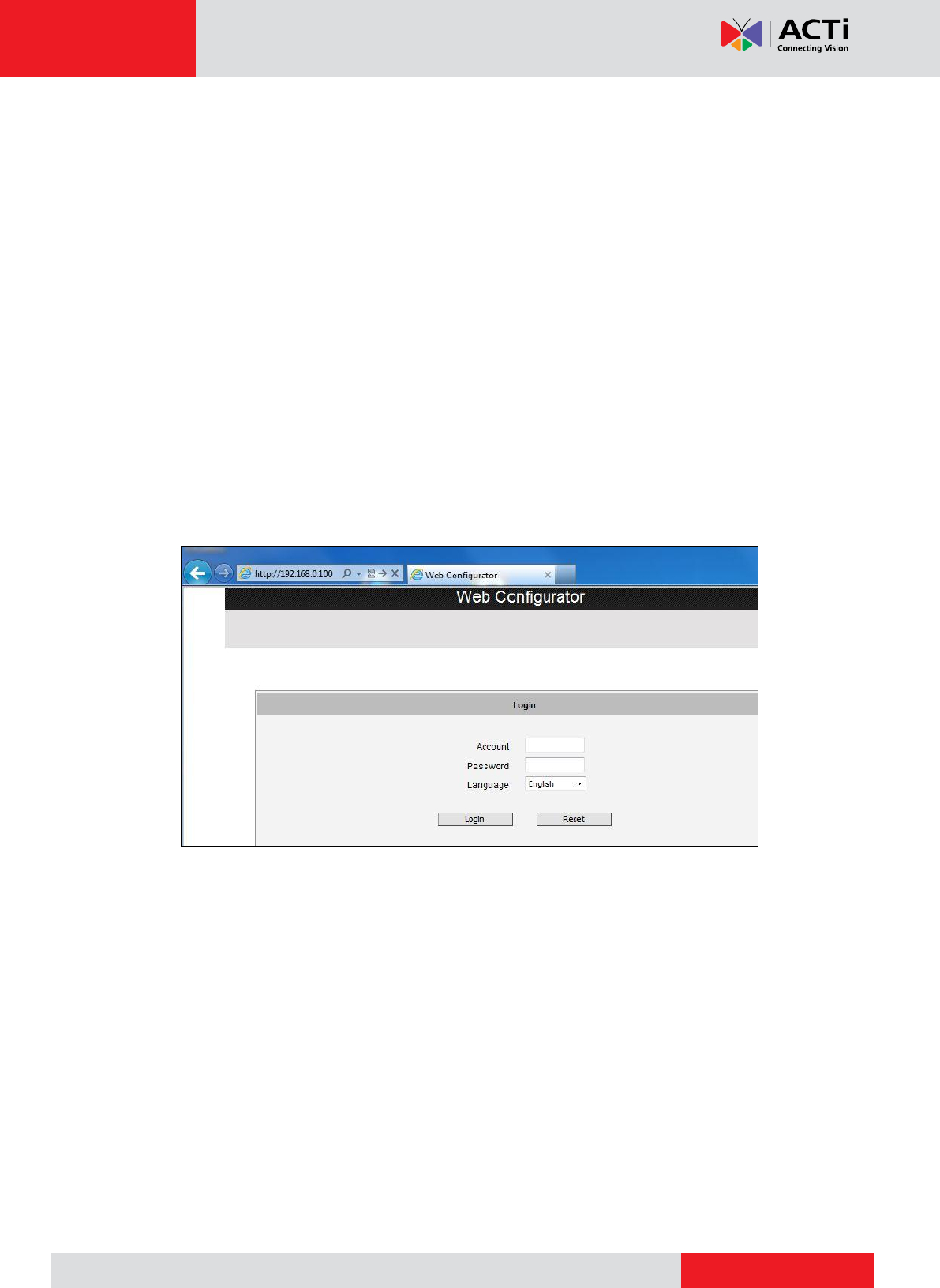 Before logging in, you need to know the factory default Account and Password of the camera.