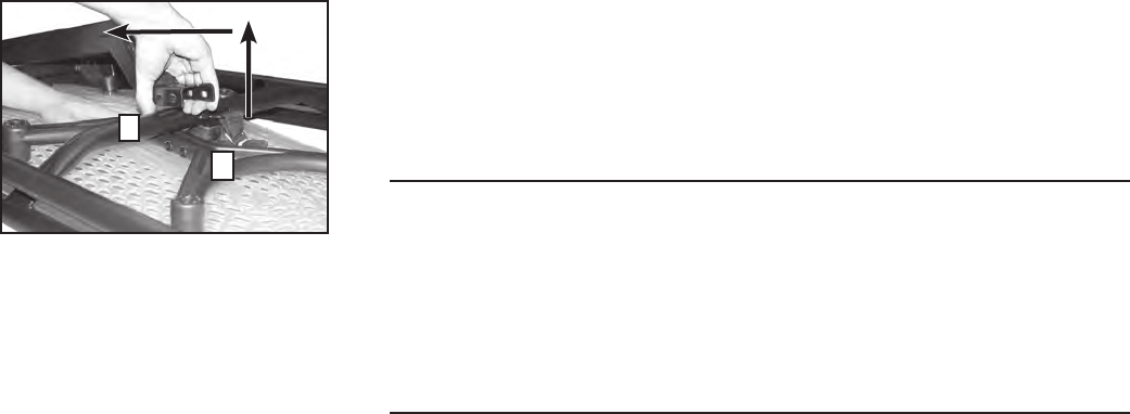 • Para desenganchar el respaldo de la estructura en A, cuidadosamente LEVANTE la barra de apoyo lo