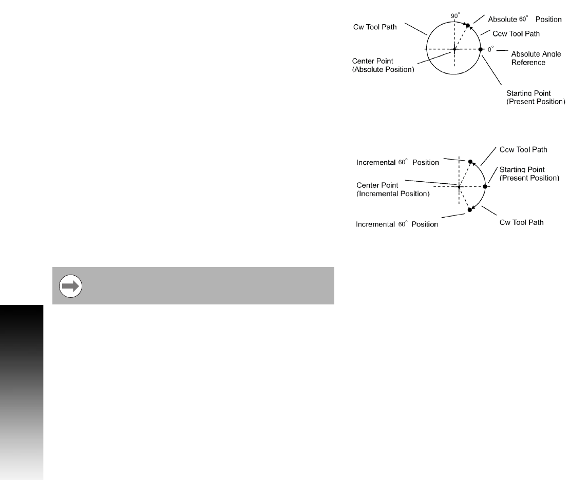 Arc Move - Center and Angle, Absolute mode: