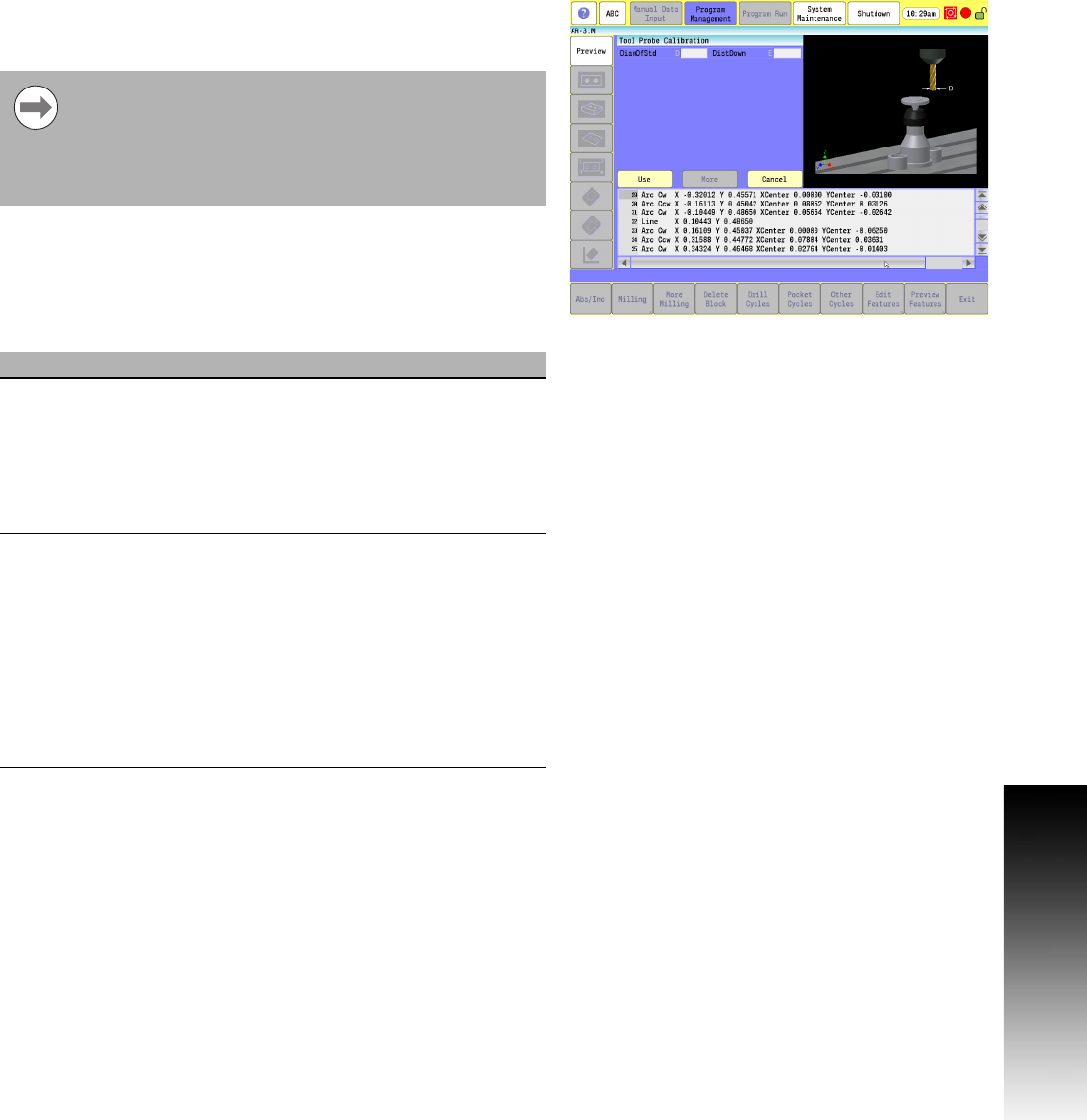 This cycle is used to calibrate the probe. This is used to set the Z