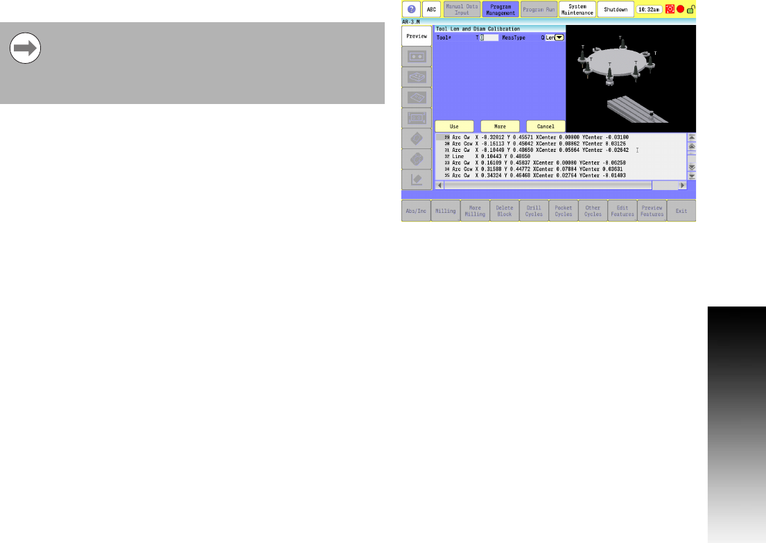moves over toward the probe stylus 0.3" (7.62 mm) or until it