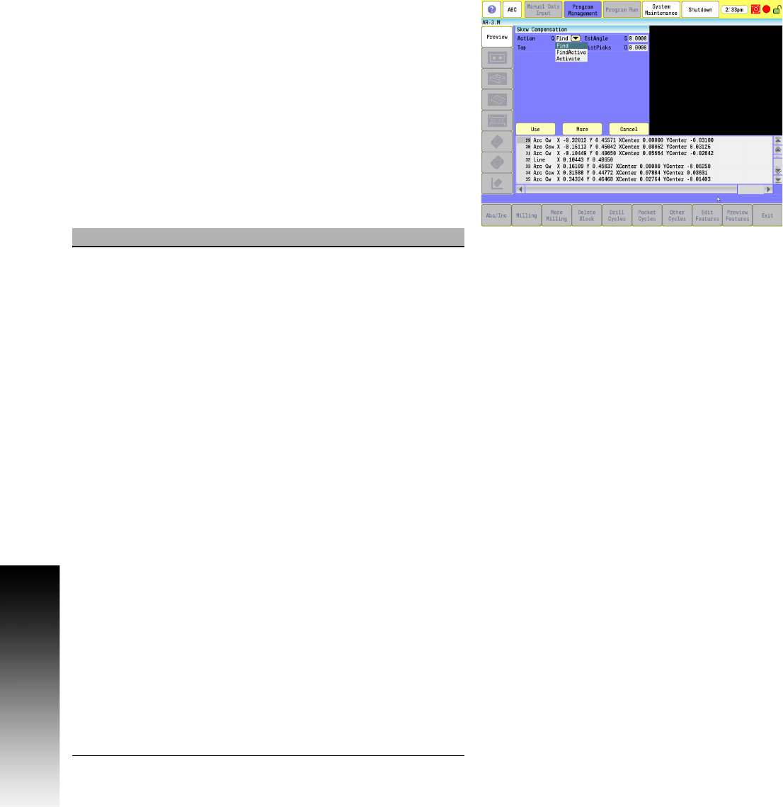 G68, axis rotation, cannot be used with skew compensation find.