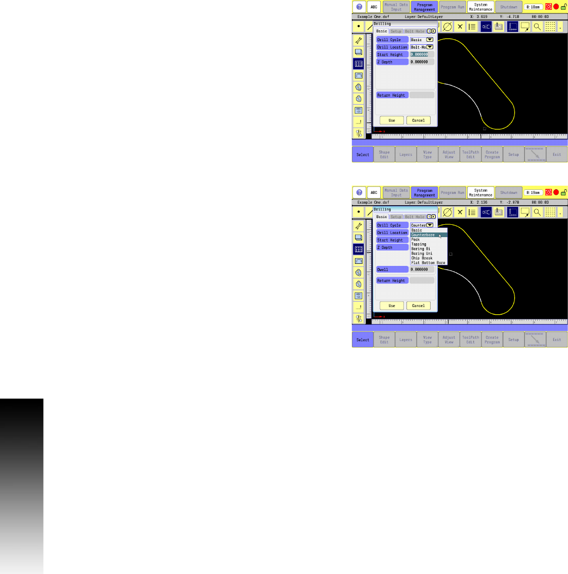 shallow holes. The peck drilling cycle feeds from the Start Height to