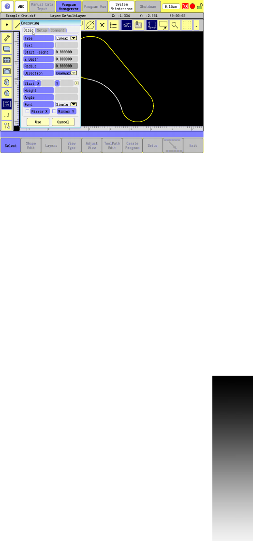 engraving patterns, Linear and Circular. Certain parameters apply only