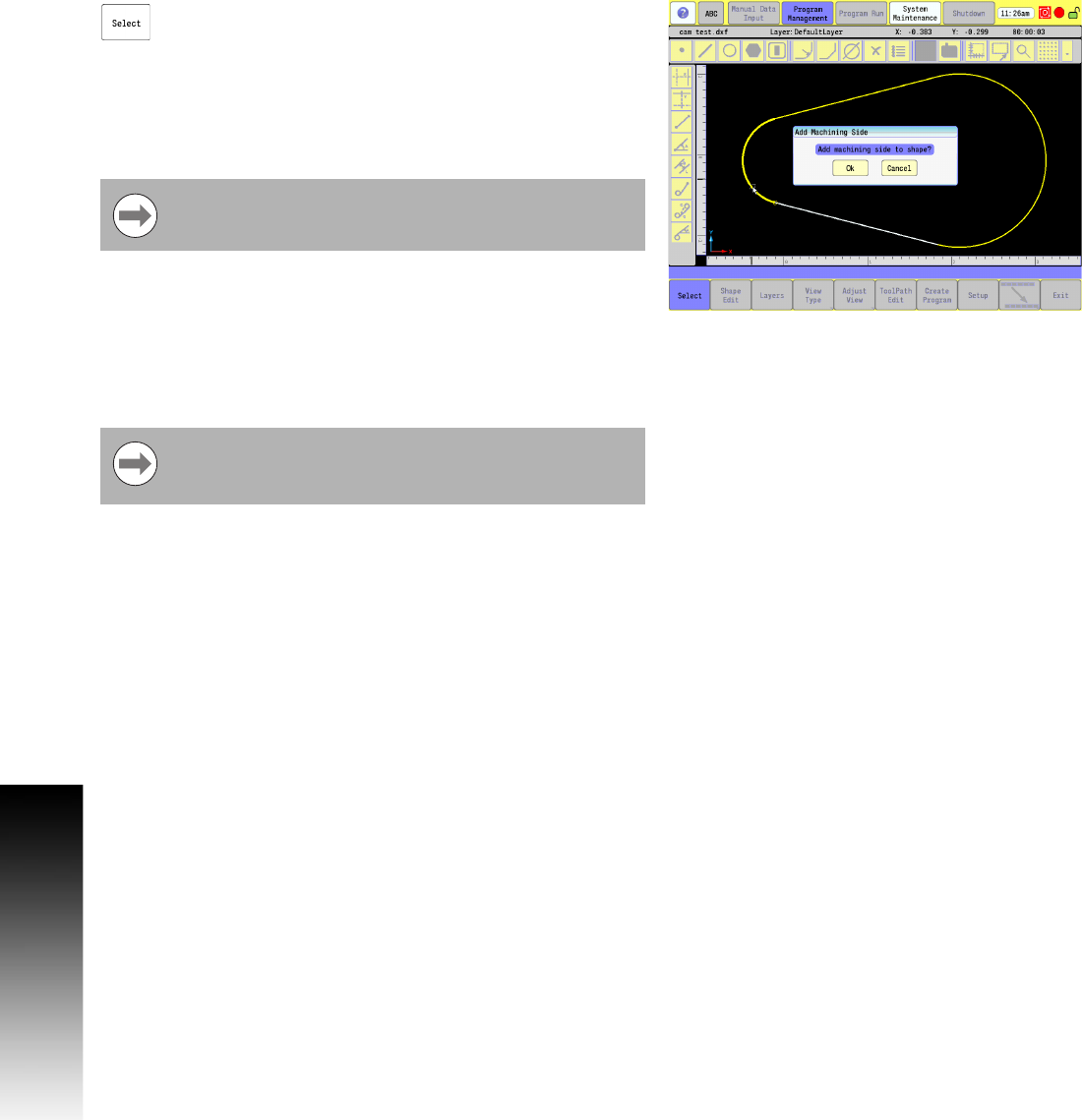 Touch Ok to accept machining side to shape, or touch Cancel