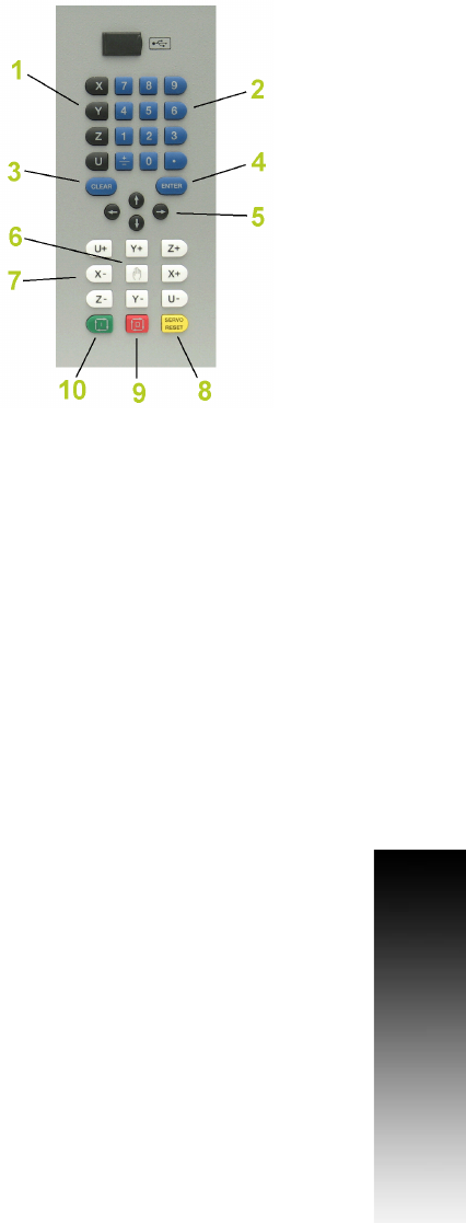 7 Manual move (Jog) Axis keys, use to manually move (Jog) the