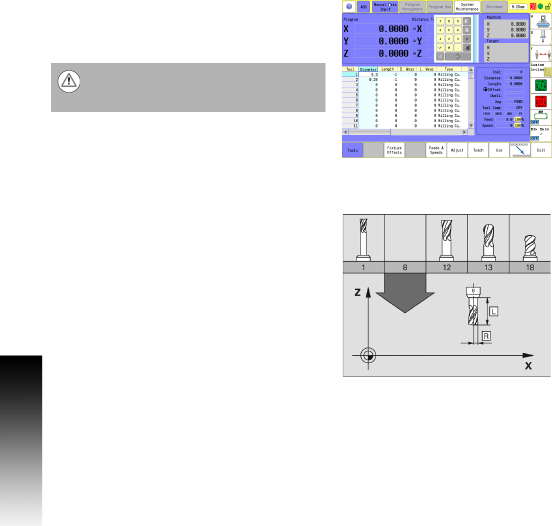 entered for the tool when running the part program.