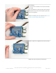 And Solder! Heat up your iron and solder in one header connection on the right. Once it is soldered, put down the solder and reheat the solder point with your iron while straightening the HAT so it isn't leaning down (For tips on soldering, be sure to check out our Guide to Excellent Soldering (https://adafru.it/aTk)). Solder one point on the opposite side of the connector Solder each of the connections for the top row © Adafruit Industries https://learn.adafruit.