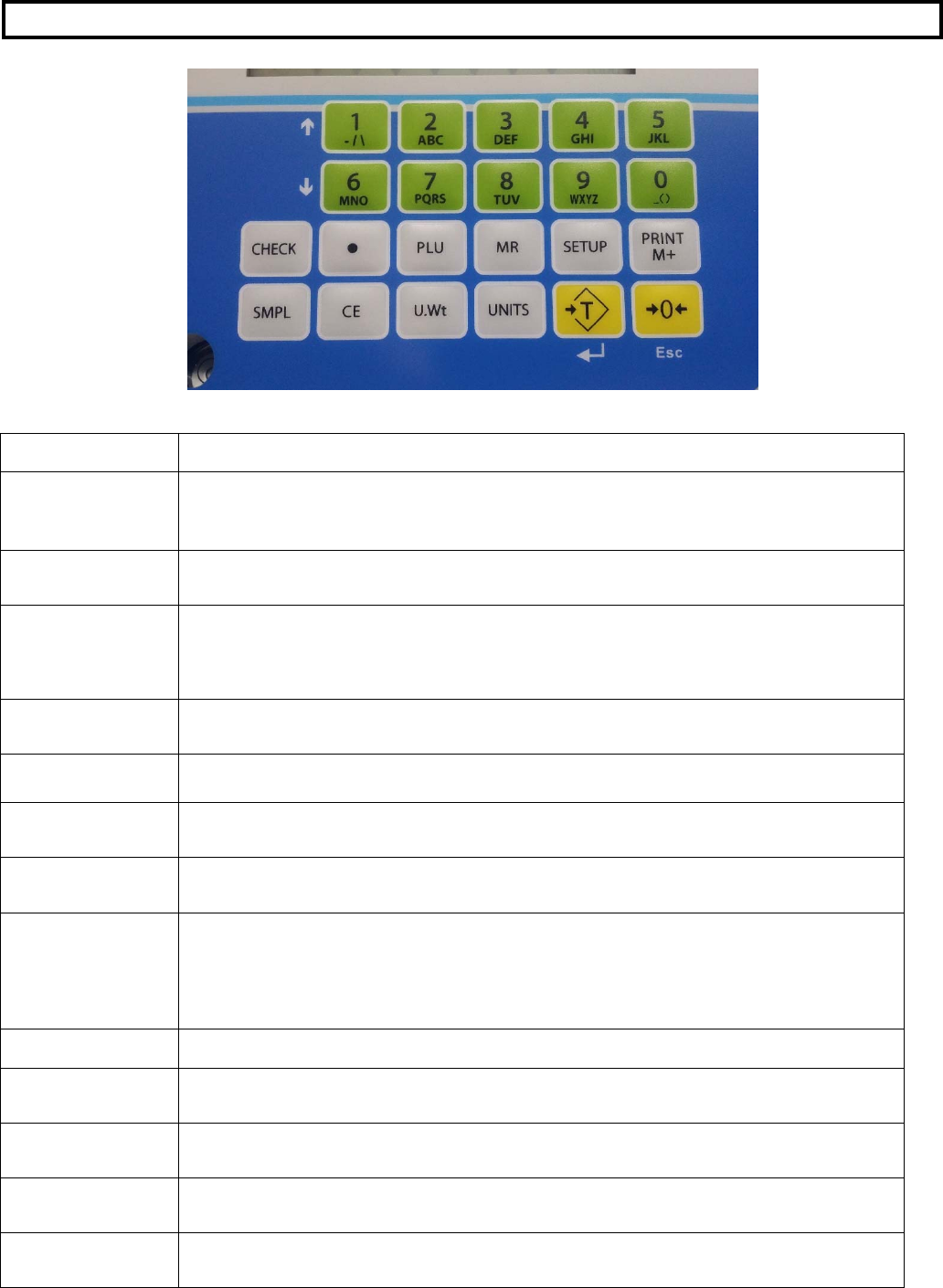 Numeric entry keys, used to manually enter a value for tare weights, unit