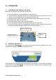 3.0 OPERATION 3.1 SETTING UP AND TURN ON THE SCALE Follow this set up when using the scale for first time: 1) Place the platform in the locating holes on the top cover. 2) Level the scale by adjusting the four feet. Ensure the bubble in the spirit level is in the centre of the level and the scale is supported by all four feet. 3) Attach the power cable to the connector located on the base to the left of the scale. 4) Plug the power cable into the mains. 5) Press the power button located on scale keypad.