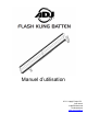 INTRODUCTION Déballage : Merci d'avoir fait l'acquisition de la Flash Kling Batten d'American DJ®. Chaque Flash Kling Batten a été scrupuleusement testée et expédiée en parfait état de fonctionnement. Veillez à bien vérifier que l’emballage n’a pas été endommagé lors du transport. Si le carton semble endommagé, veuillez inspecter soigneusement votre appareil pour vérifier qu’il ne comporte aucun dommage et que tous les accessoires nécessaires au bon fonctionnement de l’unité sont arrivés intacts.
