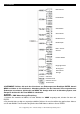 18-KANAL-MODUS (Fortsetzung) Kanal Wert Funktion 5 6 7 8 9 10 11 12 13 0 - 255 0 - 255 0 - 255 0 - 255 0 - 255 0 - 255 0 - 255 0 - 255 0 - 255 0 - 255 ROTE LED 1 0% - 100% GRÜNE LED 1 0% - 100% BLAUE LED 1 0% - 100% WEISSE LED 1 0% - 100% ROTE LED 2 0% - 100% GRÜNE LED 2 0% - 100% BLAUE LED 2 0% - 100% WEISSE LED 1 0% - 100% SHOWS OFF SHOW 0 SHOW 1 SHOW 2 MUSIKSTEUERUNG KEINE FUNKTION SHOWGESCHWINDIGKEIT/MUSIKEMPFINDLICHKEIT SHOWGESCHWINDIGKEIT LANGSAM-SCHNELL AM WENIGSTEN EMPFINDLICH - AM EMPFINDLICH