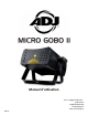 INSTRUCTION GÉNÉRALE Déballage : Nous vous remercions d’avoir choisi le Micro Gobo II d’American DJ®. Chaque Micro Gobo II a été minutieusement testé et expédié en parfait état de fonctionnement. Veuillez inspecter avec minutie le carton d’emballage et vérifier qu’il n’a pas été endommagé durant le transport.