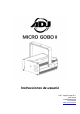 INOZIONE INTRODUCCIÓN GENERAL Desembalaje: Gracias por haber adquirido el Micro Gobo II de ADJ Products, LLC. Todos los Micro Gobo II se han probado meticulosamente y se han expedido en perfectas condiciones de funcionamiento. Examine con cuidado la caja en que se entrega para detectar daños que puedan haber ocurrido durante el transporte.