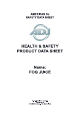 AMERICAN DJ SAFETY DATA SHEET HEALTH & SAFETY PRODUCT DATA SHEET Name: FOG JUICE ADJ. Supply Europe BV.