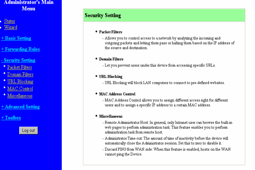 Packet Filter enables you to control what packets are allowed to pass the router. Outbound filter applies
